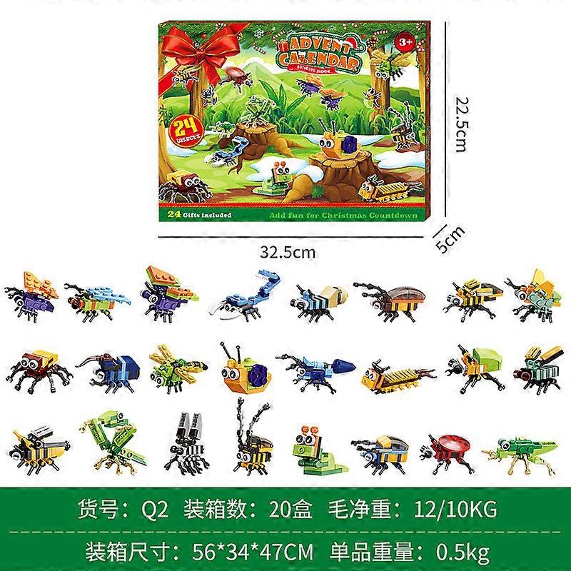 Christmas Timed Tear-Apart Blind Box Set of 10 - DIY Dinosaur Building Blocks Blind Box Q2 Insects (459g)-jc