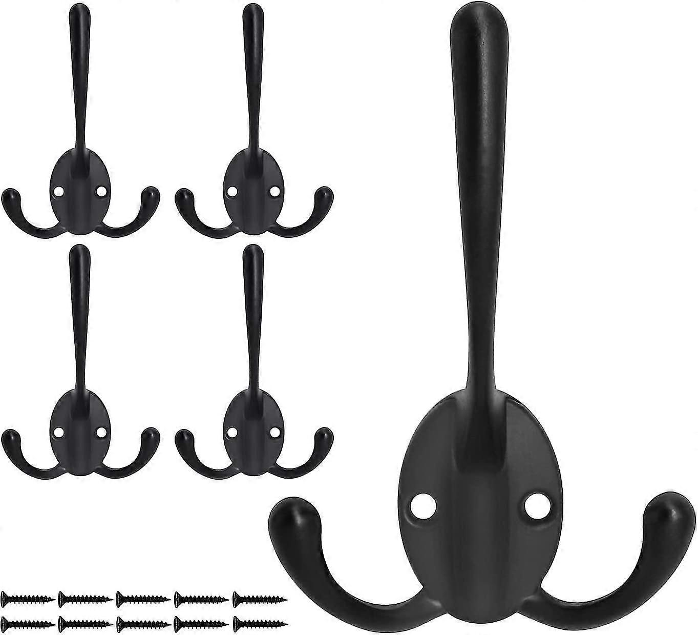 Premium Material: Coat hooks made of zinc alloy and the screw is made of iron, hard and durable material, not easy to break and can resist rust and erosion, it can easily hold up to 50 lbs of weight. Stylish Design: The Heavy hooks design, helps you to save space and keep your home organized. Stylish hook will add some classic minimalist flair, Special design makes double hooks beautiful, rustic, vintage, suitable for most decoration. Multiple Applications: These hooks design with double hooks perfect for use in bathroom, bedroom, mudroom, farmhouse, outdoor, closet, foyer, entryway, fence. Can hanging towels, hats, purse, jackets, backpacks, farm tools and everything Easy to Install: You can use our screws to install directly on a wall, this hook can help organize your clutter. Package includes 5 Pack double prong coat hooks and 10 screws of supporting screws, match each other well.