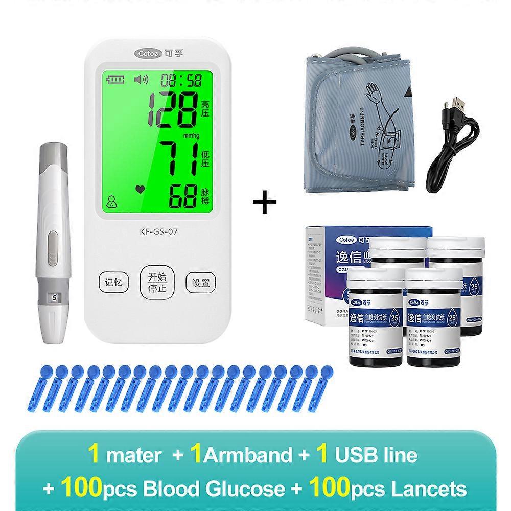 Cofoe 2 in 1 Meter Blood Pressure and Blood Glucose Tester Upper Arm Automatic Digital Monitor For Diabetes Health Monitoring