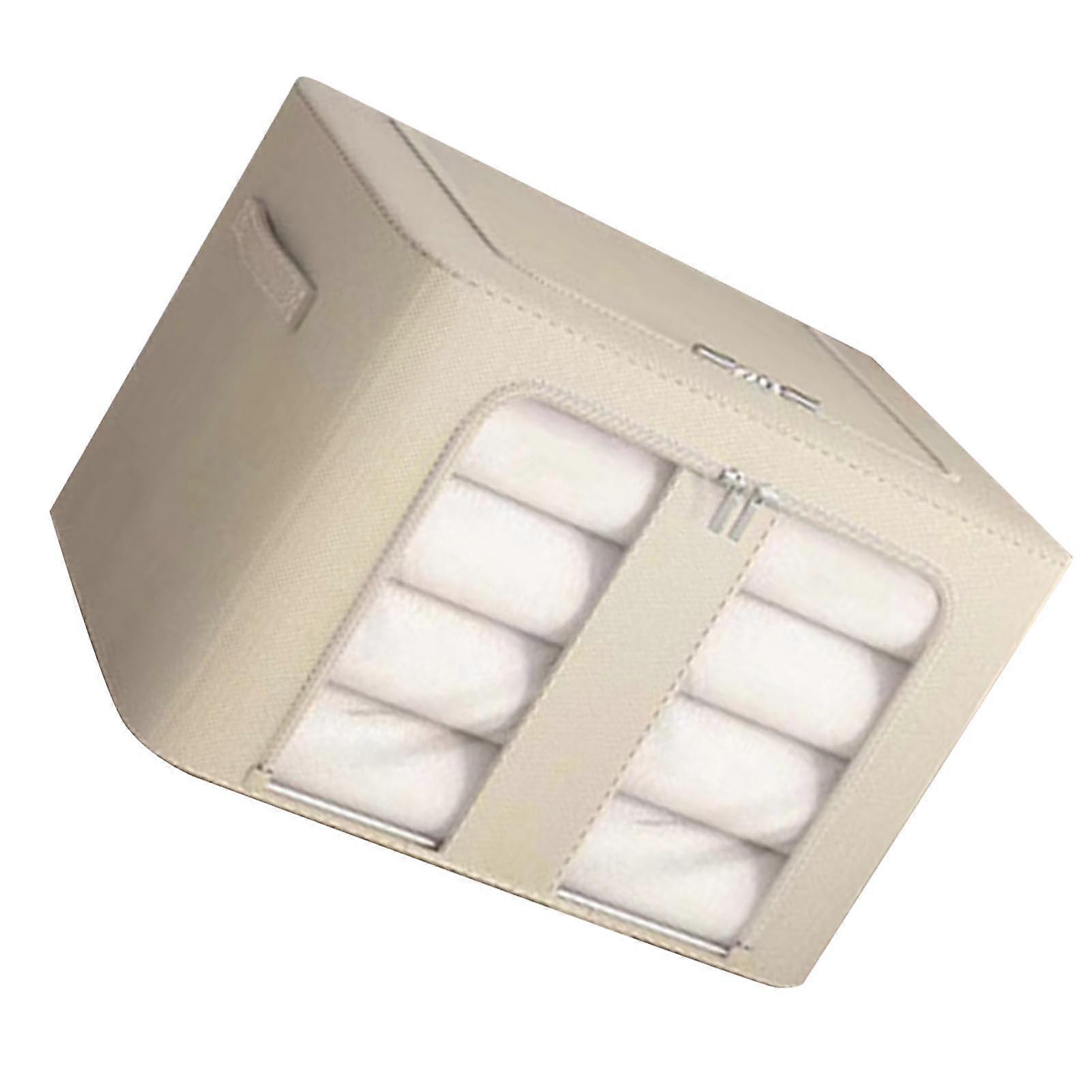 Collapsible Stackable Storage Box 52.9oz Cream Yellow with Window Handle