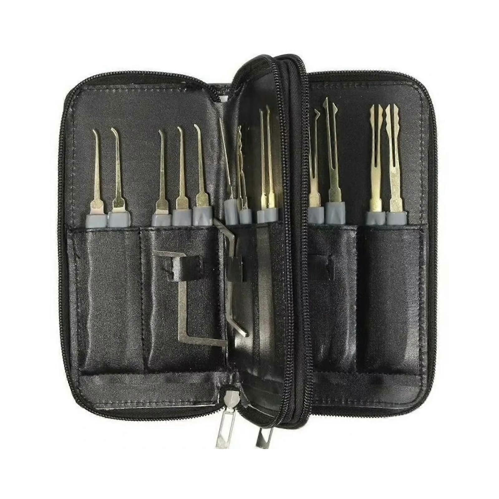 Features: Main lock picking with this 24+10pc plate set featuring specializes extractors and jiggler keys, perfect for automotive locksmiths and skill building enthusiasts. Crafted from strong stainless steel with anti corrosion coating, this professional kit includes 24 accuracy tool and 10 universal keys in a compact organizers bag. Ideal for automotive technicians, security professional , and STEM focused learners seeking hands on lock mechanism education or emergency access solution. Use during locksmith training meeting , vehicle lockout emergencies, or educational demonstrations about security system repair man and key duplication principles. The included black nylon roll up case ensures tool protection and portability, making this comprehensive set both a practical field companion and intriguing educational gift. Specifications: Material: Metal Storage size: about 10x19cm/3.93x7.48inch Package Includes: 1 set of x locksmith tool note: 1.Please allow 1-2cm errors due to manual measurement, make sure that you do not mind before you order. 2.Due to the difference between different monitors, the picture may not reflect the actual color of the item.