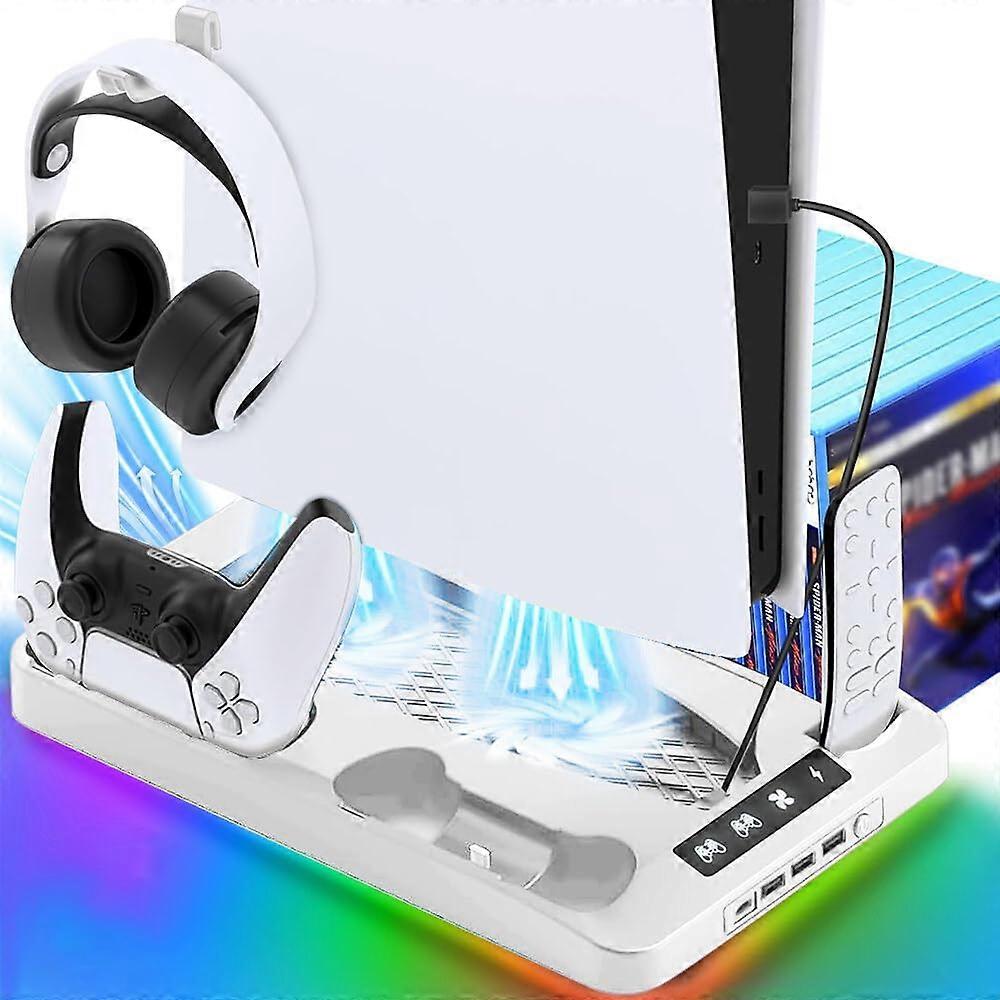 Cooling Stand with Dual Controller Charging, RGB Lights, Game Storage for PS5 Disc and Digital Editions