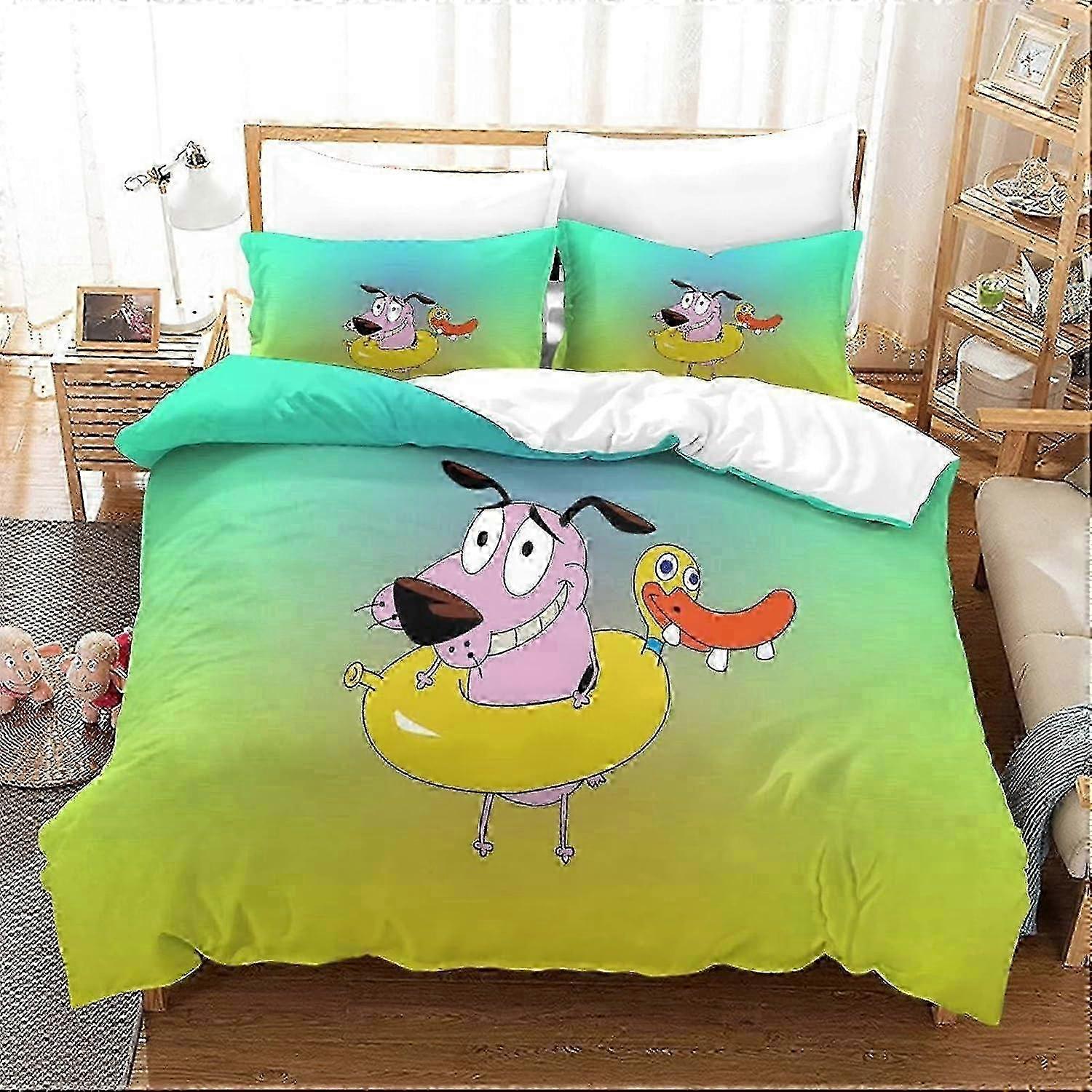 Courage The Cowardly Dog Bedding Set Dog Bed Pieces with Duvet Cover for Boys, Girls and Teenagers Double 135*200 CM