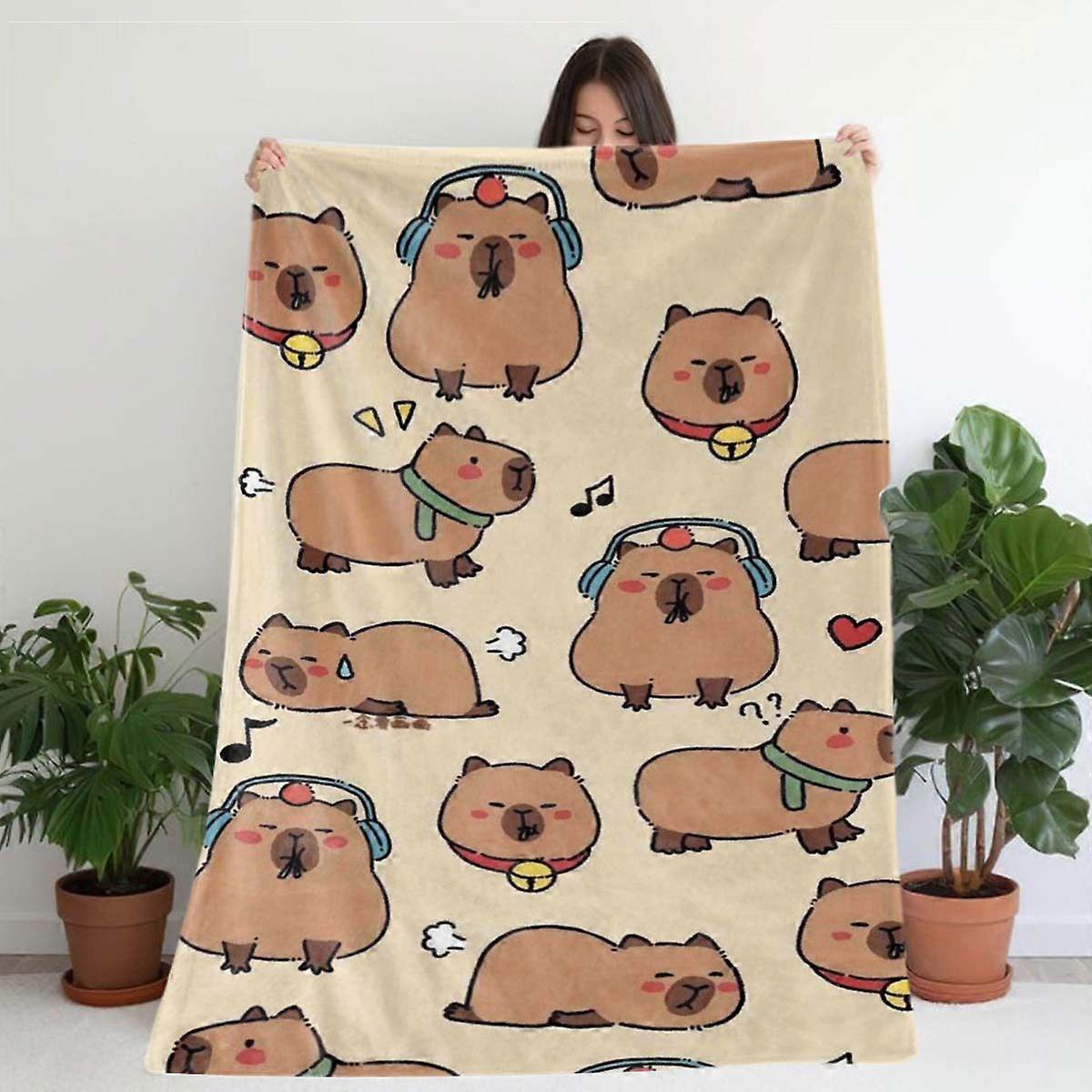 Cute Capybara Pattern Soft Fleece Throw Blanket, Polyester Flannel, Digital Print, All-Season Versatile Nap Blanket for -AZXRT319