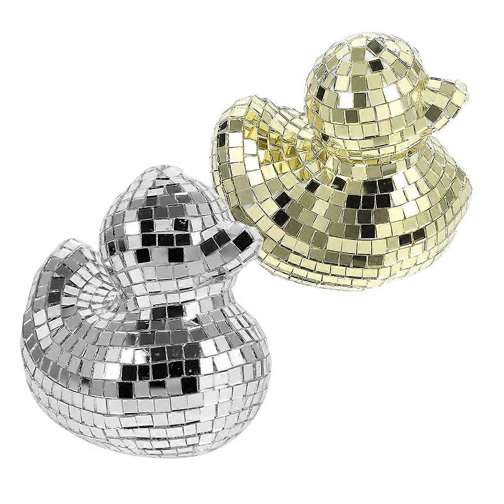 Cute Desktop Decoration Craft Duck Shaped Reflective Ornament Silver 2Pcs