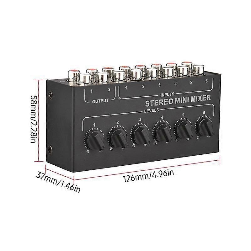 CX600 Mini Stereo 6 Channel Passive Mixer Portable Audio Mixer 6 in 2 Out Stereo Distributor Volume Control