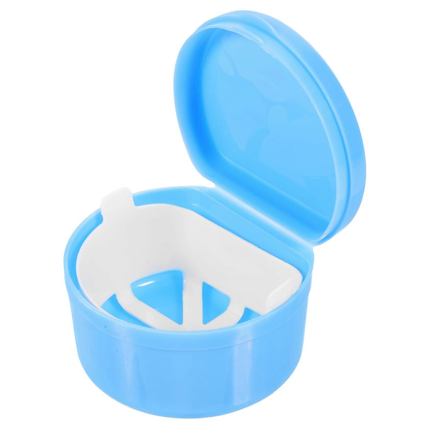 Denture Storage Box with Vent and Filter, Compact Travel Cleaning Case for False Teeth, Blue