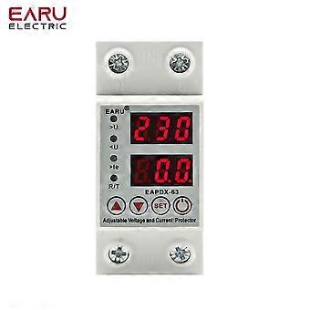 Din Rail Dual Display Adjustable Over Voltage Current and Under Voltage Protective Device Protector Relay 40A 63A 80A 220V 230V