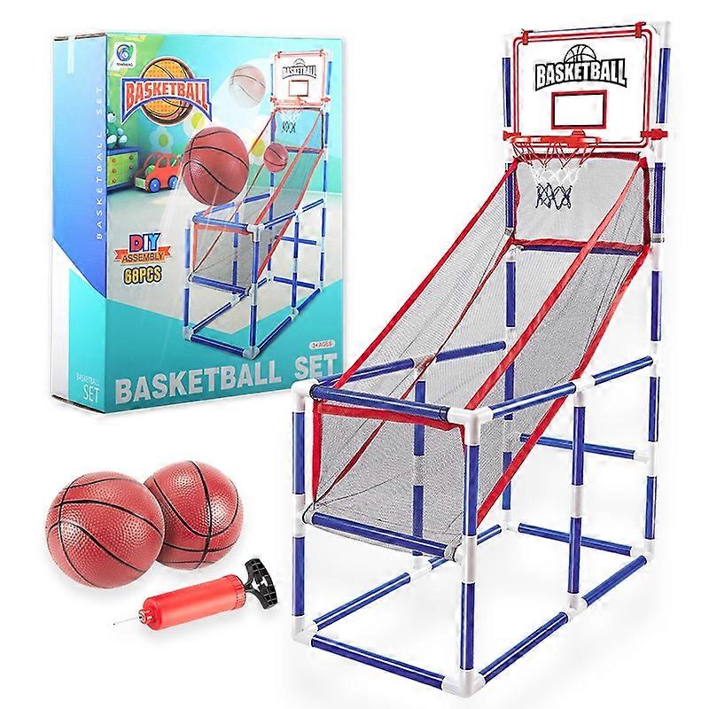 •DIY assembly indoor/outdoor basketball shooting toy •The detachable basketball training toy can exercise kid's shooting flexibility, let children enjoy the fun of shooting •Designed with protection net, the basketball will automatically fall into the net after shooting •Comes with 2 basketballs and 1 air pump Specification: •Assembled size: 140*92*47*58cm(shown in picture) •Ball size: 14cm Package included: •1 x Set of Basketball Assembly Toy •2 x Basketballs •1 x Air Pump •1 x English and Chinese Manual