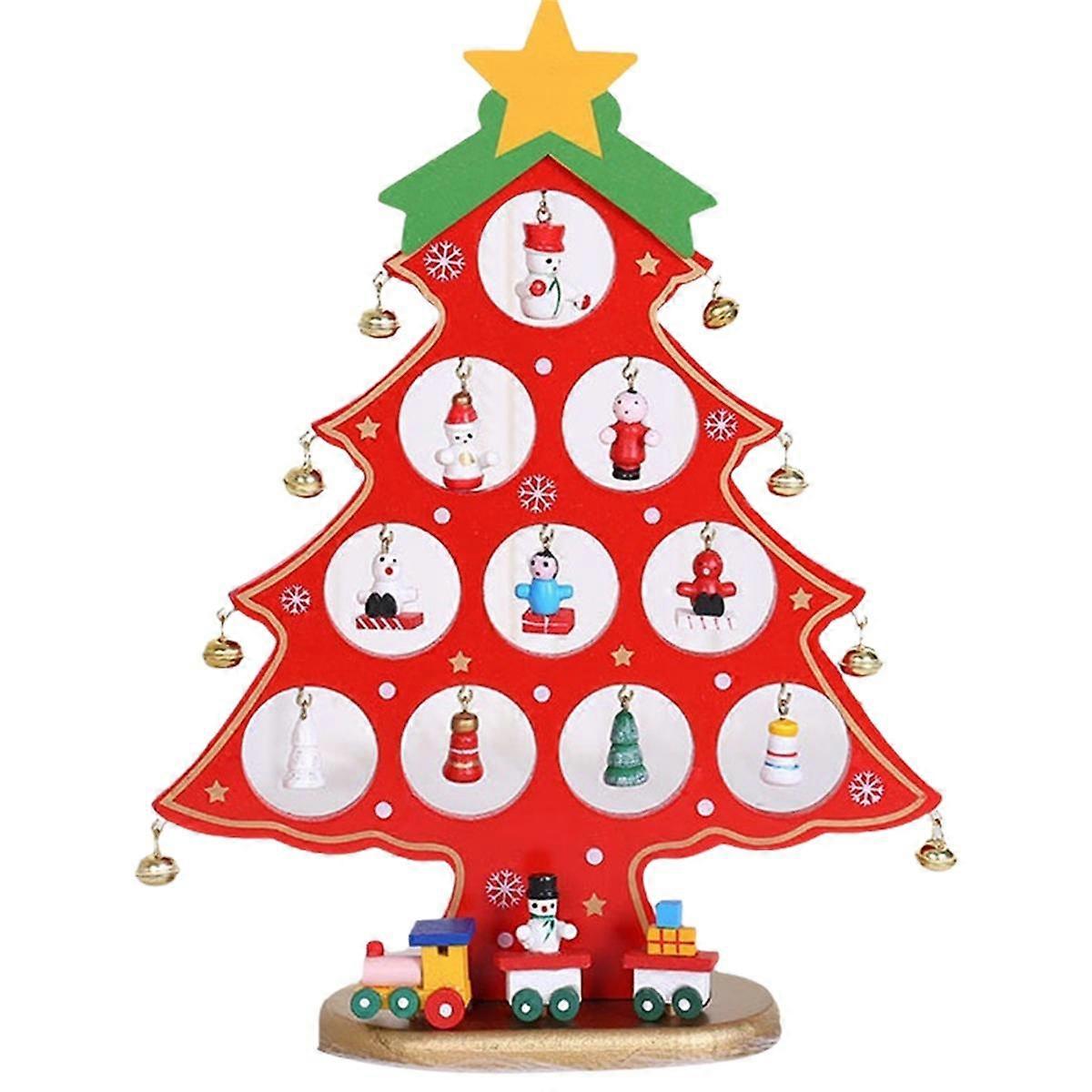 DIY Wooden Christmas Tree Christmas Tree Gift Holiday Mini Christmas Tree Home Decoration Flat 10 Holes Red