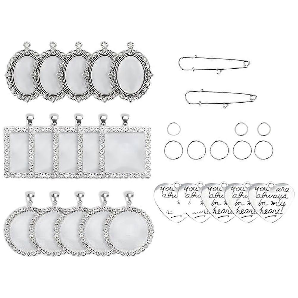 DIY Photo Charms Pin Brooch Craft Kit for Wedding Bouquet Accessories in Silver Color 1 Set