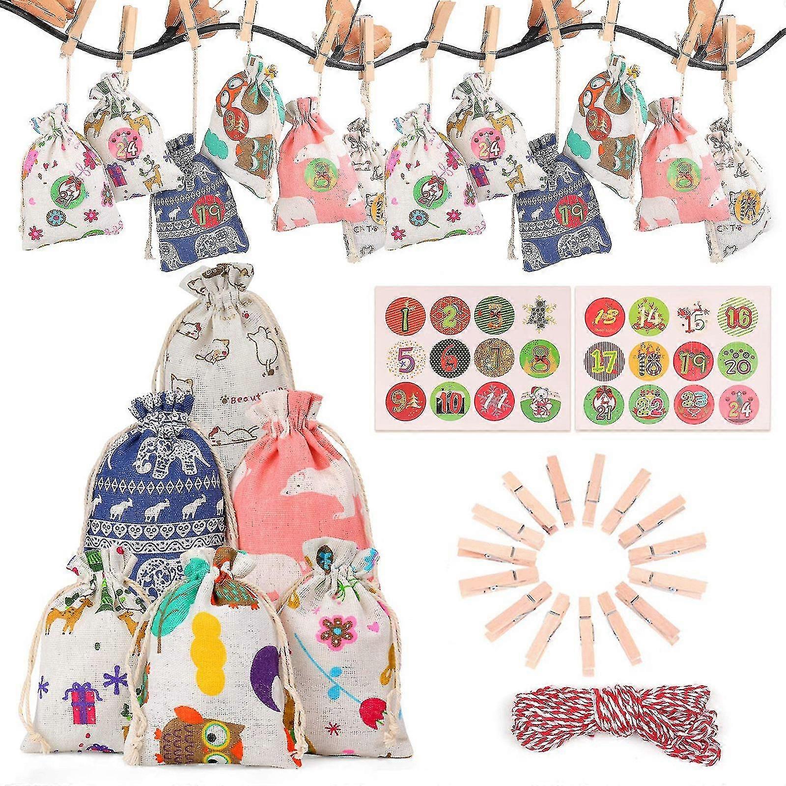 Diy Advent Calendar Jute Fabric Bags Decoration And Numbers Stickers