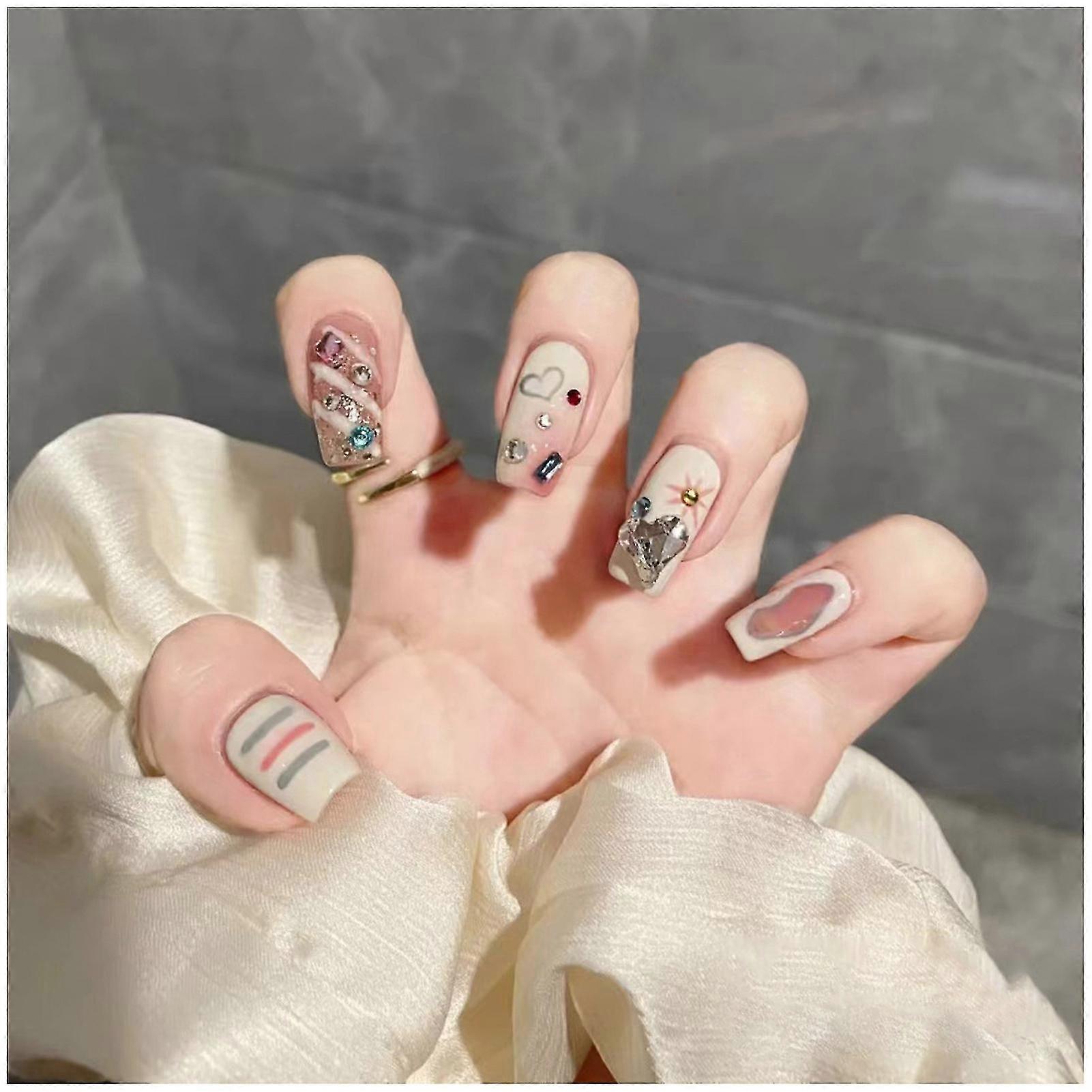 Milky White Graffiti False Nails Bright Colors No Color Fading False Nails For Manicure Nail Art Diy Design