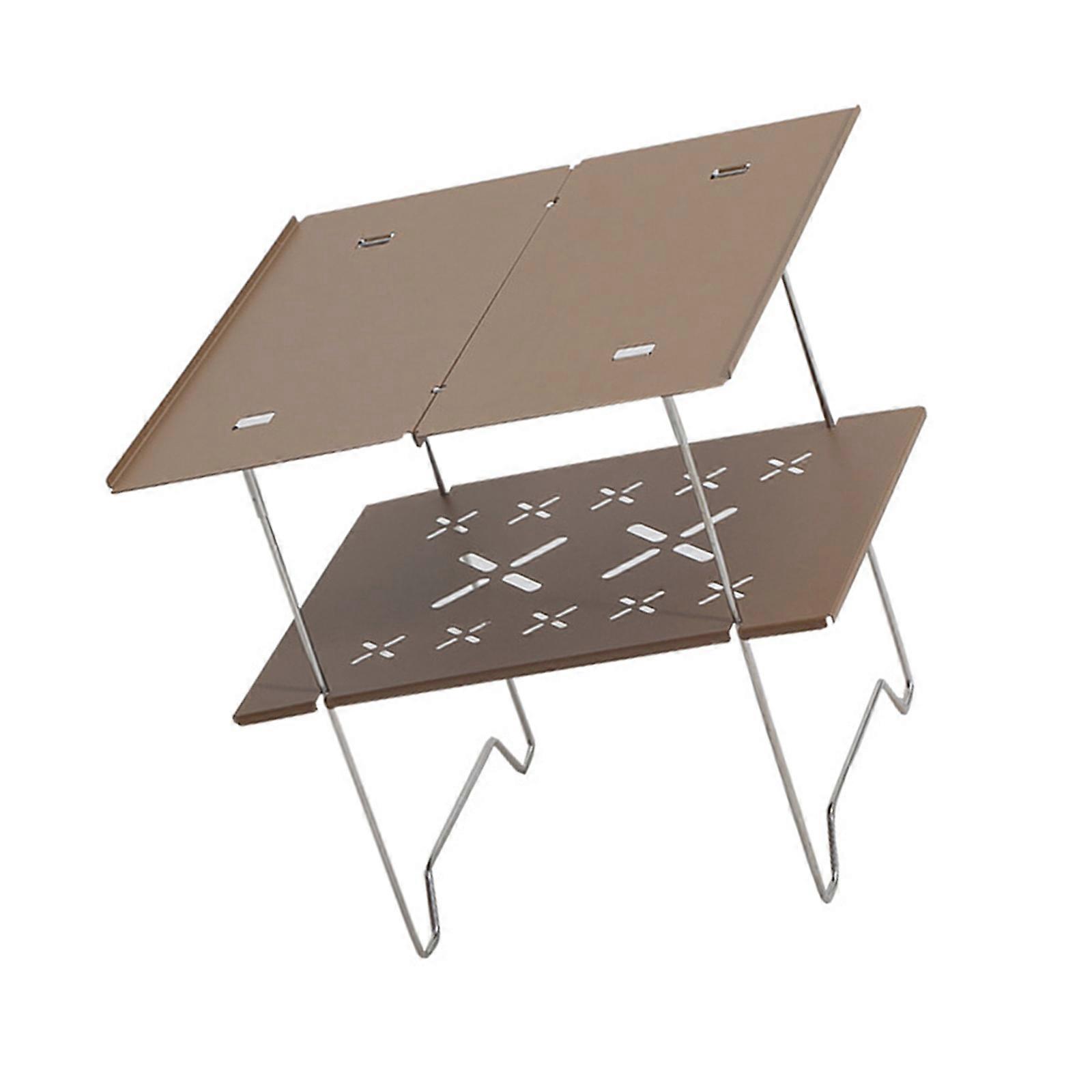 Double Folding Camping Table, Double Layer Metal Table Camping Picnics Table Portable Table Camping Desk Beach Table khaki
