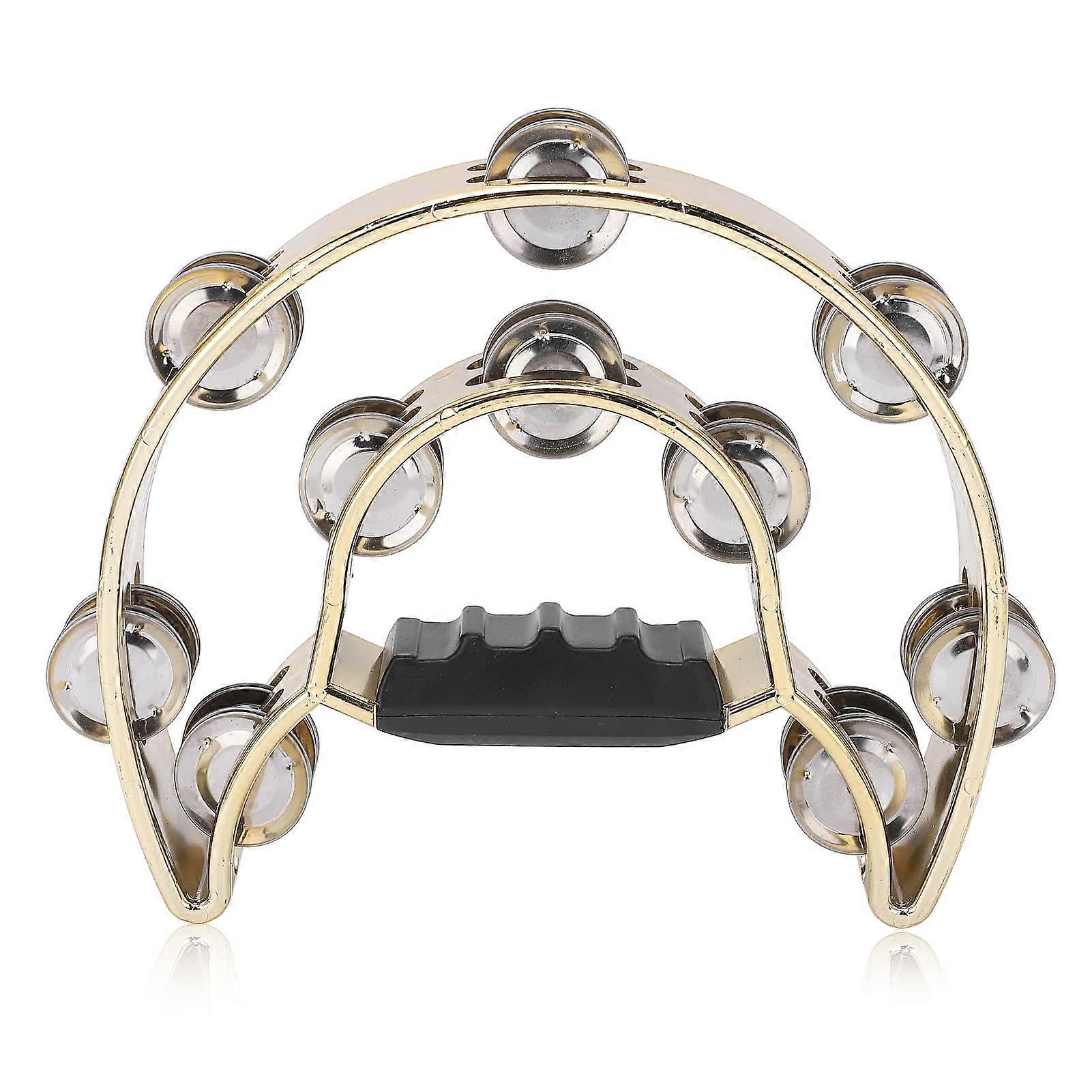 Doublerow Hand Tambourine Metal Tambourine Plated Bells Percussion Musical Instrument for Celebration Concert Dance Party (Yellow)