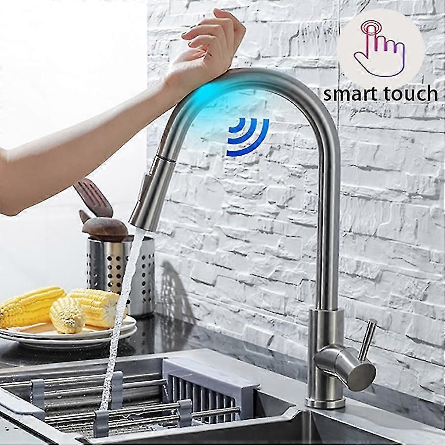 Dqok Kitchen Faucet Pull Out Brushed Nickle Sensor Stainless Steel Black Smart Induction Mixed Tap Touch Control Sink Tap