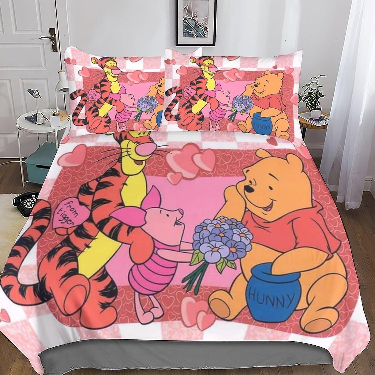 DSJackson The Pooh Bear 3D Printed Duvet Cover 3 Pieces Cartoon Quilt Cover Bedding Set with Microfiber with Hidden Zipper Closure with Pillowcases fo