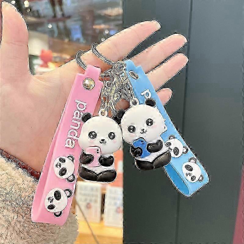 Dww-(Bleu + Rose) Mignon Dessin Anim Panda Porte-cls-Panda Porte-cls-Fille Cadeau-PVC Pendentif Mle-Voiture Porte-cls