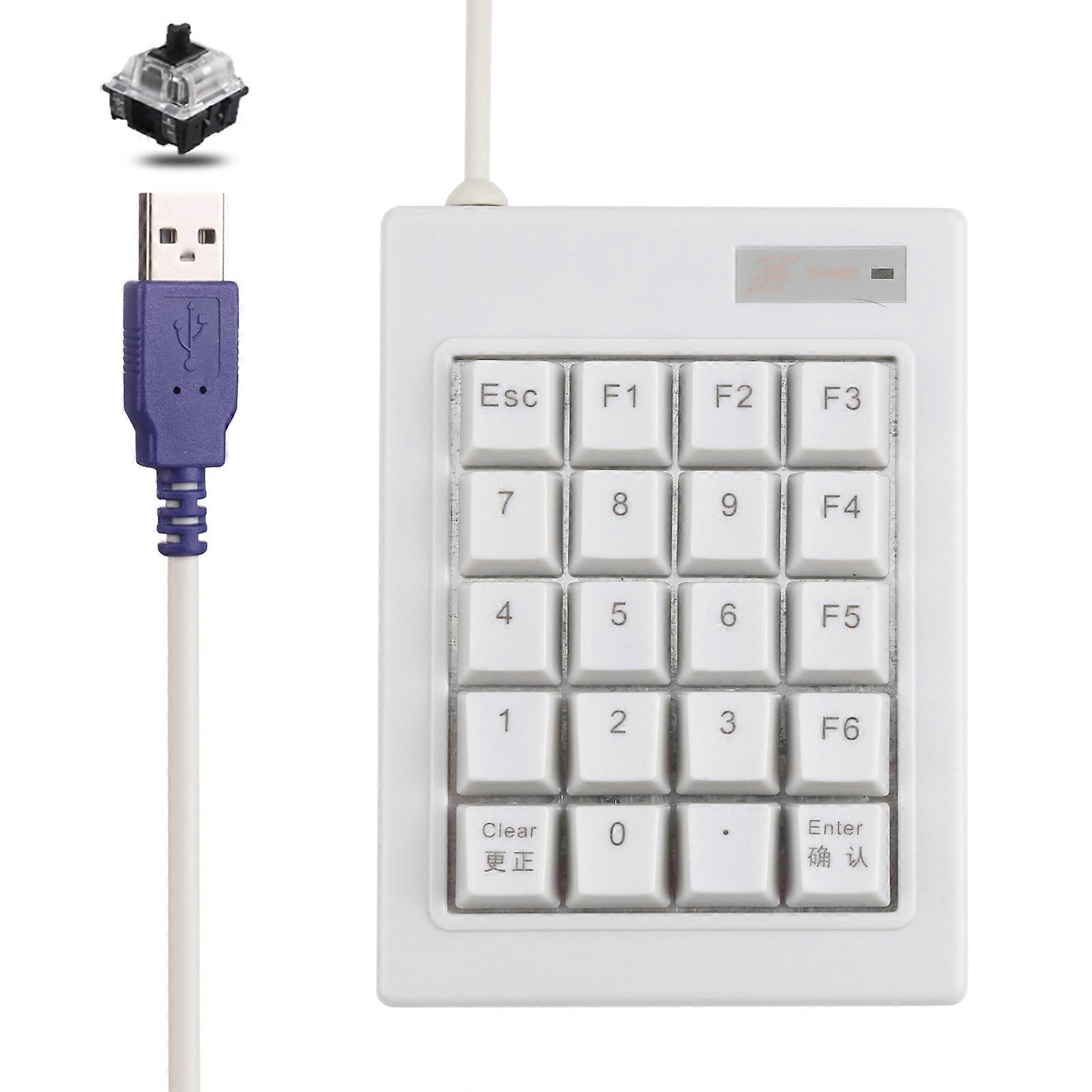 DX-20A 20-keys USB Wired Mechanical Black Shaft Mini Numeric Keyboard (White)