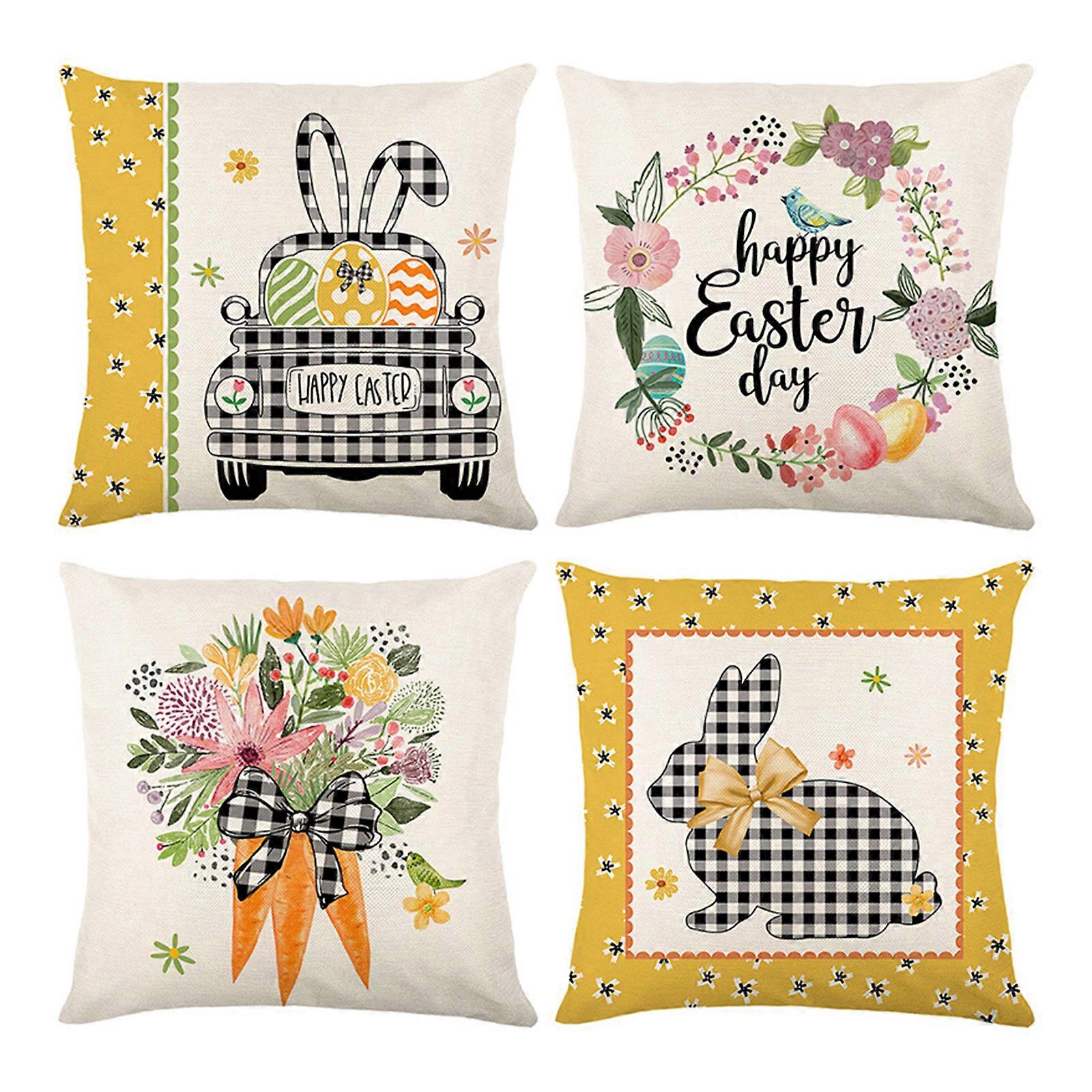 Easter Flower Rabbit Cushion Cover Square Pillow Cover Rabbit Pattern Throw Pillow Cover 4-Piece Multi-color 45 X 45cm
