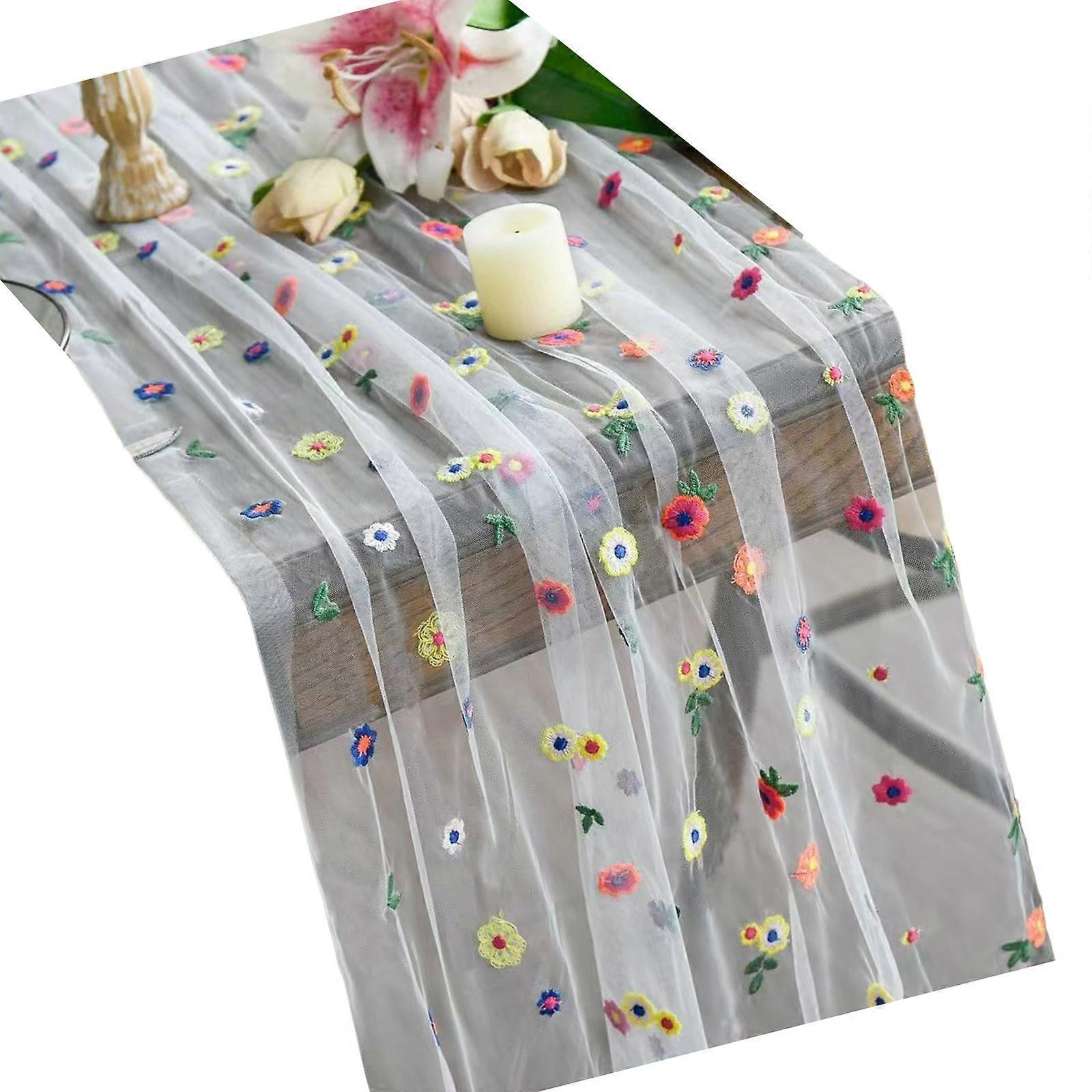 Elegant Florals Lace Tablecloth Fade Resistant Polyester Fabric Rectangular Table Decoration White