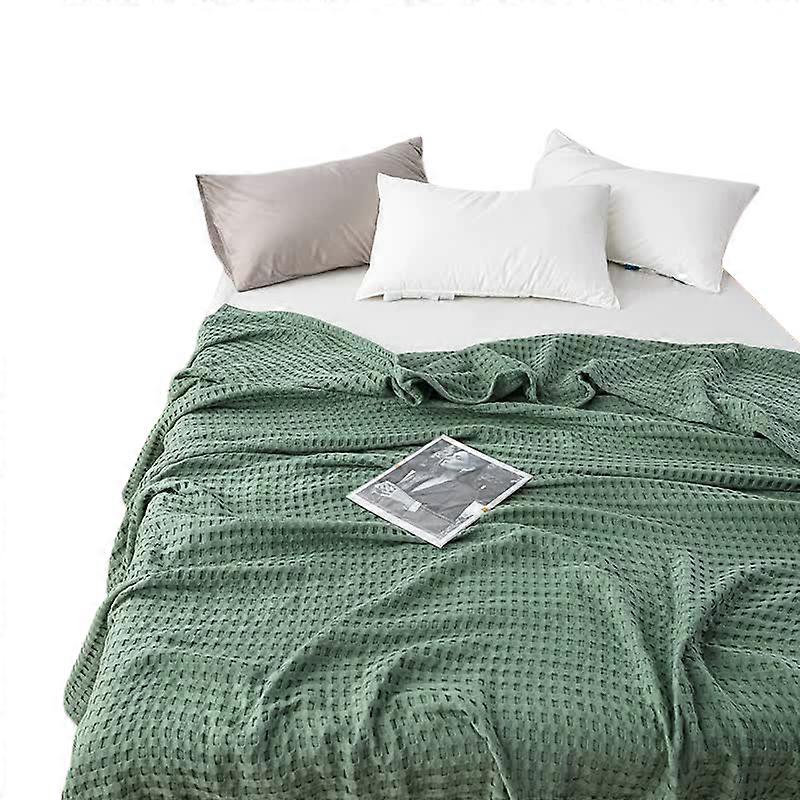 Elosung Cotton Waffle Blanket Air Conditioning Throw Summer Quilt 100 X 152Cm Green Blankets
