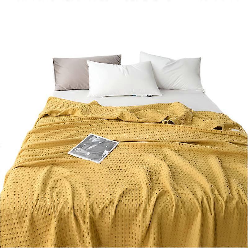 Elosung Cotton Waffle Blanket Air Conditioning Throw Summer Quilt 100 X 152Cm Yellow Blankets