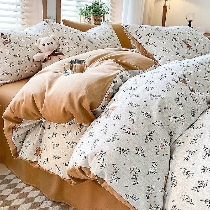 Elosung Phil Bear Thick Brushed Cotton 4 Piece Bed Sheet Set 1.5M Fits 200X230cm Duvet Quilt Covers