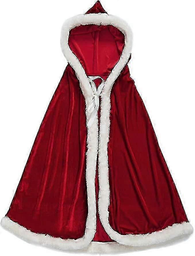 En's Christmas Cloak Velvet Mrs. Santa Claus Hooded Cape Robe Halloween Costume (red)(1pcs)