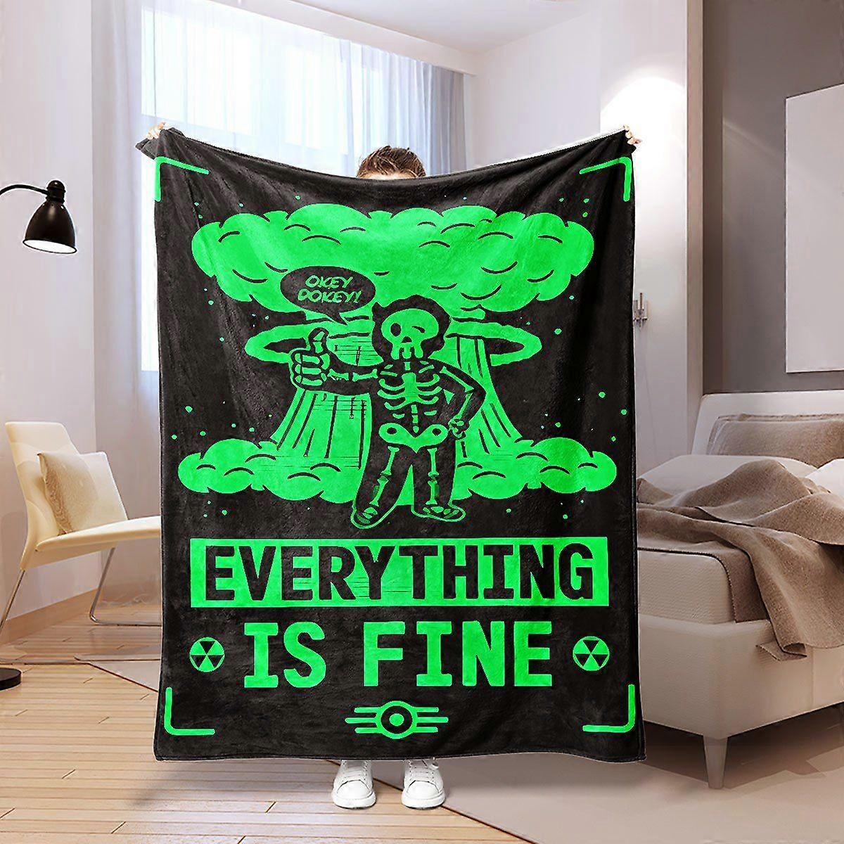 Everything is Fine" Skeleton & Clouds Print Throw Blanket - Soft Polyester, All-Season, Multipurpose Use for Home, Offic-POKJH197