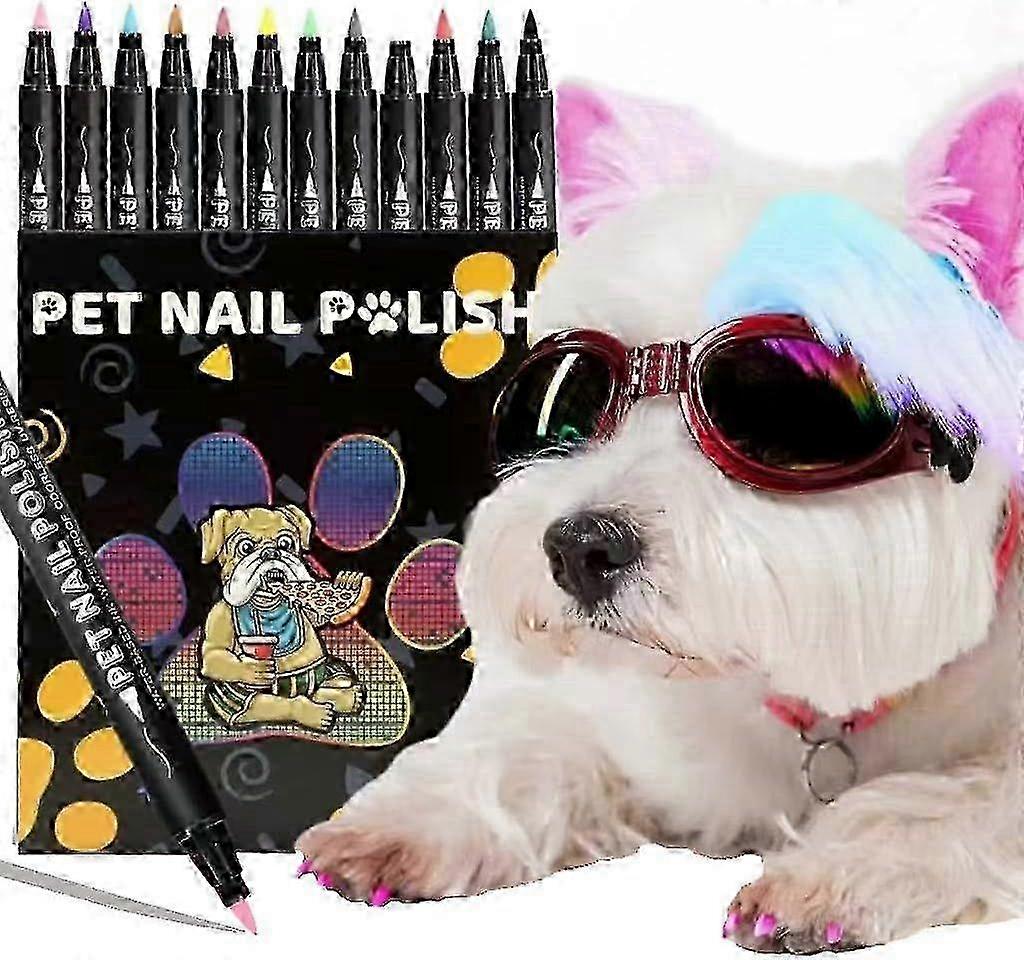 FAFAS Dog NailPolish Pen - 12 Color Safe, Fast-Drying & Easy-to-Use Pet Nail Polish Set for DIY Styling