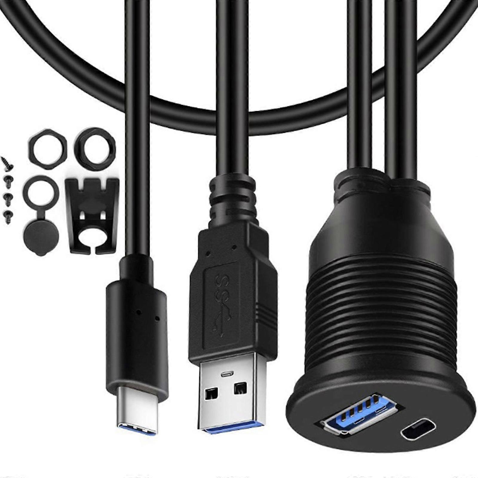 Fast Speed USB3.0 and Type C Double Interfaces Waterproof Extension Cable for Car Dashboards Panel Data Transfer Multicolor