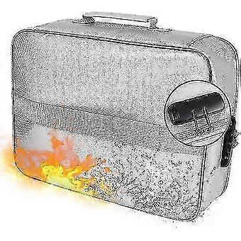 Fireproof file storage bag with lock, featuring a waterproof zipper, ideal for protecting important documents from fire and water damage.