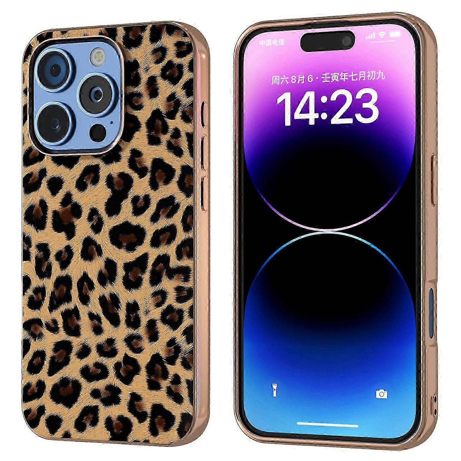 For iPhone 16 Pro Case Electroplating Leopard Pattern PU+TPU Phone Cover - Champagne Gold ?Premium Material Composition: Crafted from TPU+ leopard pattern PU Leather, this phone case offers a sophisticated look with durable protection ?Electroplated Frame Design: The frame is enhanced with an electroplating process, providing a sleek metallic finish that adds a touch of elegance to your phone ?Wireless Charging Compatible: Designed to support wireless charging without the need to remove the case, ensuring convenient and hassle-free charging ?Perfect Fit and Accessibility: Designed with precise cutouts, the case provides easy access to all buttons, ports, and features, maintaining the phone?��s original functionality ?Pocket-Friendly Design: Slim and lightweight, this case slips easily into your pocket without adding bulk, providing both protection and convenience on the go Package included: ?1 x Phone Case ?Other items not included