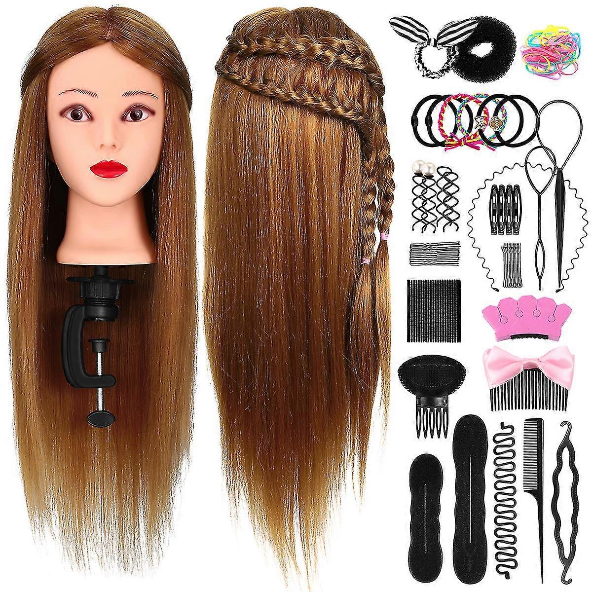 Frcolor Mannequin Head Set With Hair Salon Training Head Stand Set Hair Training Model Hairdressers Free Table Clamp And Braid Se