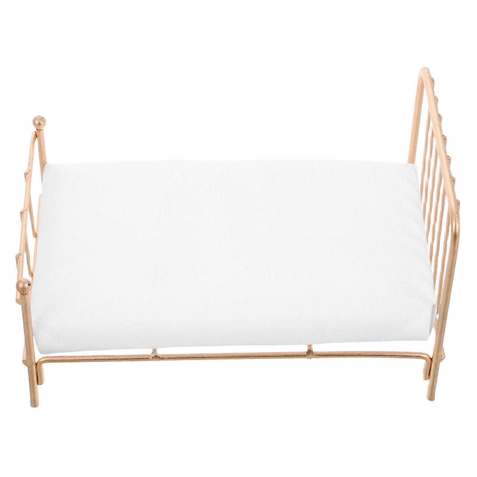 FRCOLOR Miniature Furniture Dollhouse Wooden Fabric Bed With Mattress Pillow 1 12 Scale Furniture Dollhouse Decoration Accessories Golden