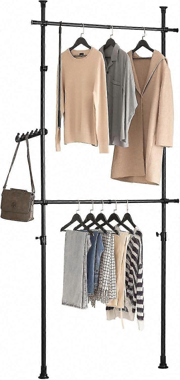 FRG109-W Heavy Duty Clothes Rail, Adjustable Telescopic Clothes Rack for Bedroom Closet Storage, Open Wardrobe Garment Hanging Rail