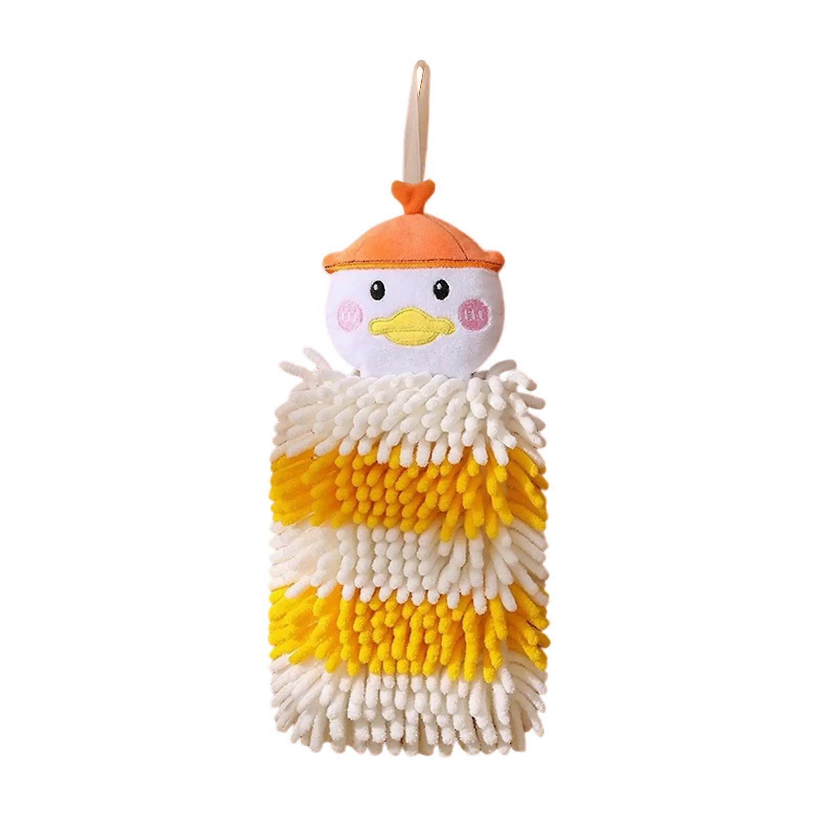 Fuzzys Creature Hand Towels Soft and Durable Chenilles Towels Cleaning Cloth with Hanging Hook for Easy Use Towels Yellow and white duc
