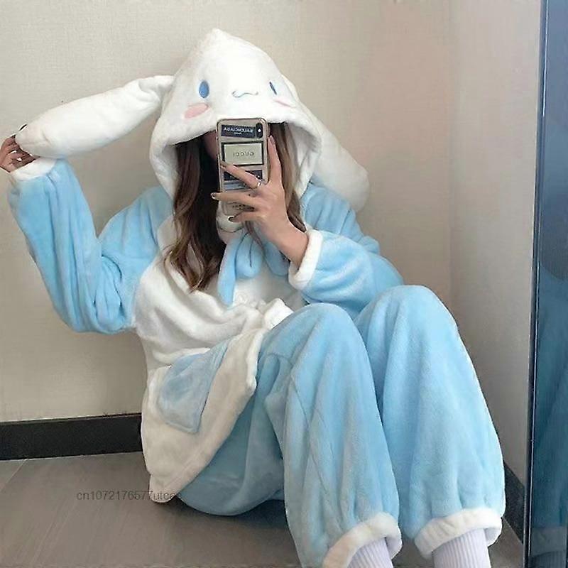 GaiBoSi Sanrio Cinnamoroll Plush Cotton Cute Hooded 2 Pcs Pajamas Sets Y2k Sweet Cartoon Oversize Casual Pyjamas Women Winter Home Set