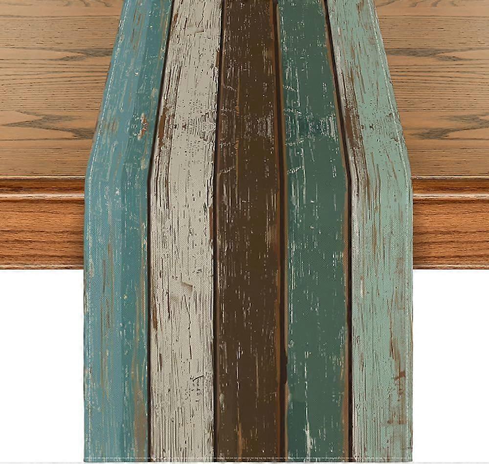 Green Retro Rustic Wood Texture Table Runner, Seasonal Spring Kitchen Dining
