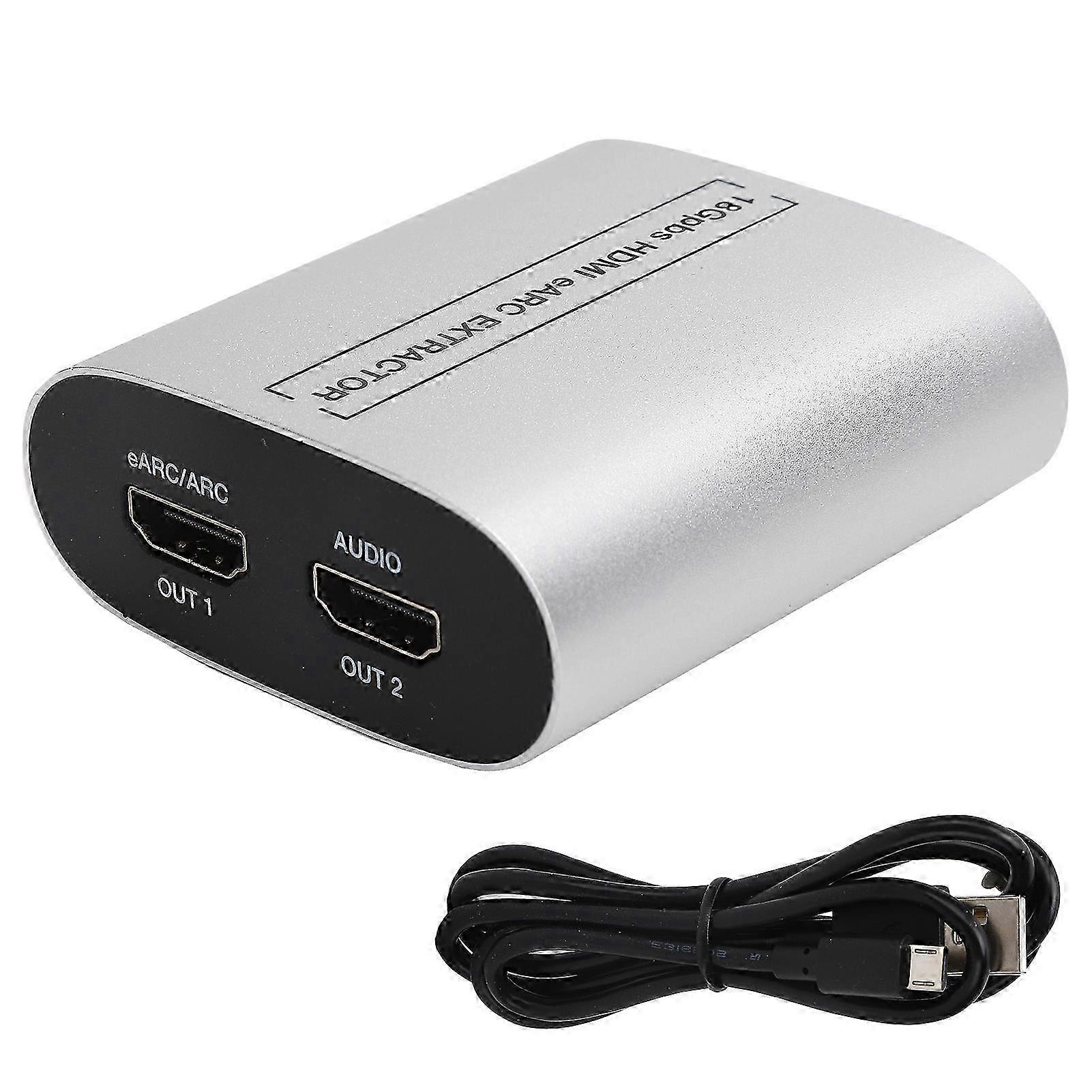 Features: 1.Compatible with high definition multimedia interface 2.0b HDCP2.3/1.x, supports 18Gbps video bwidth. 2.Built?in equalizer, retimer driver, can maintain the stability of data transmission. 3.Supports high video resolution, multiple audio input modes, solves compatibility problems caused by a single input. 4.Support extracting eARC/ARC audio/TV signal to high definition multimedia interface audio output. 5.The audio decoder is light portable, supports plug play, is convenient fast to operate. specification:Item Type: Audio Decoder Material: Aluminum alloy Color: Silver High Definition Multimedia Interface : 2.0b HDCP : HDCP 2.3/1.x Video Bwidth: 18Gbps Input: 1 x high definition multimedia interface Type-A (19-pin female) Output: 2 x high definition multimedia interface Type-A (19-pin female) Power Supply: USB 5V/500mA Power: 1.75W PackageList:1 x Audio Decoder 1 x Data Line 1 x User Manual