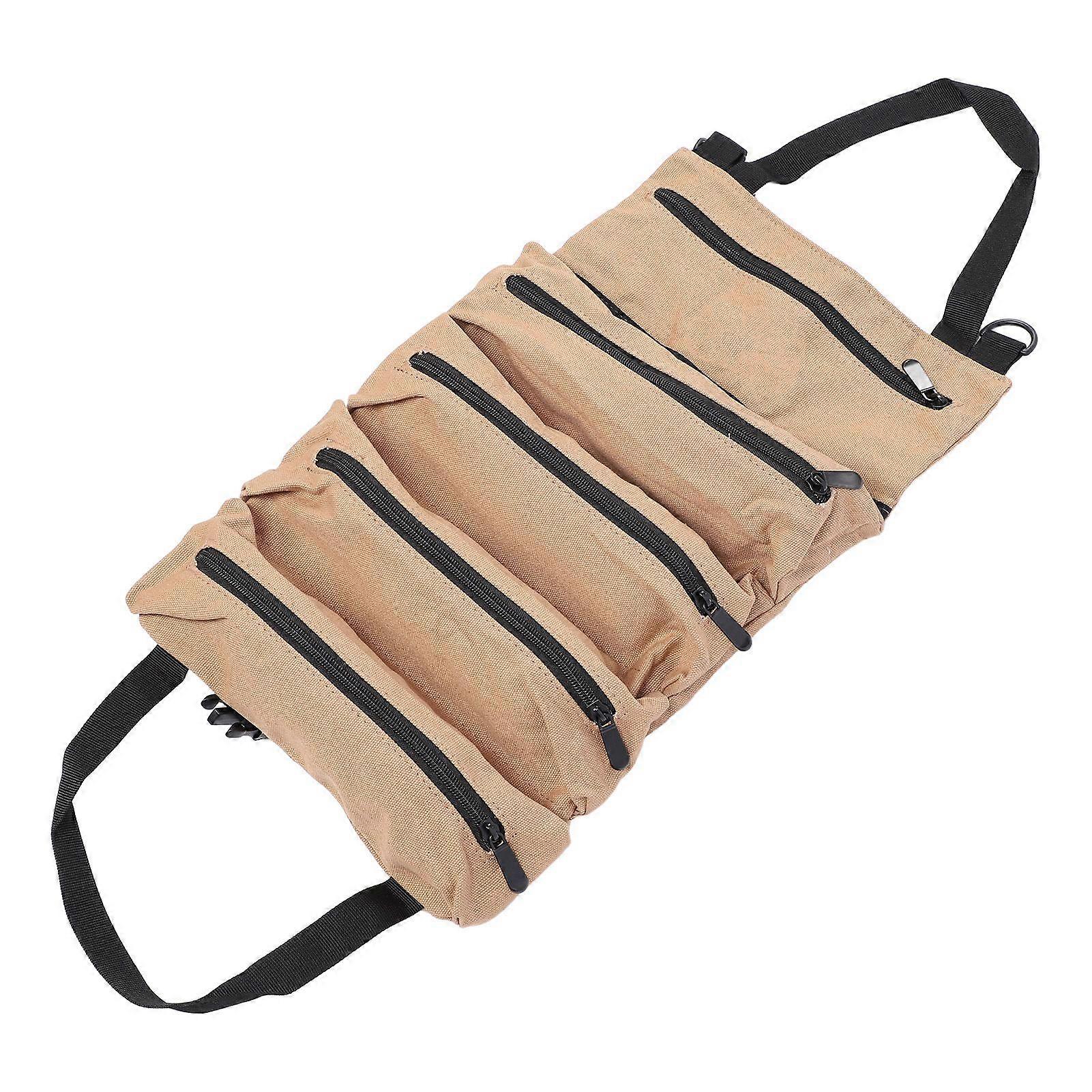 5-pocket multi-function canvas tool bag khaki portable hardware tool storage bag repair tool storage...