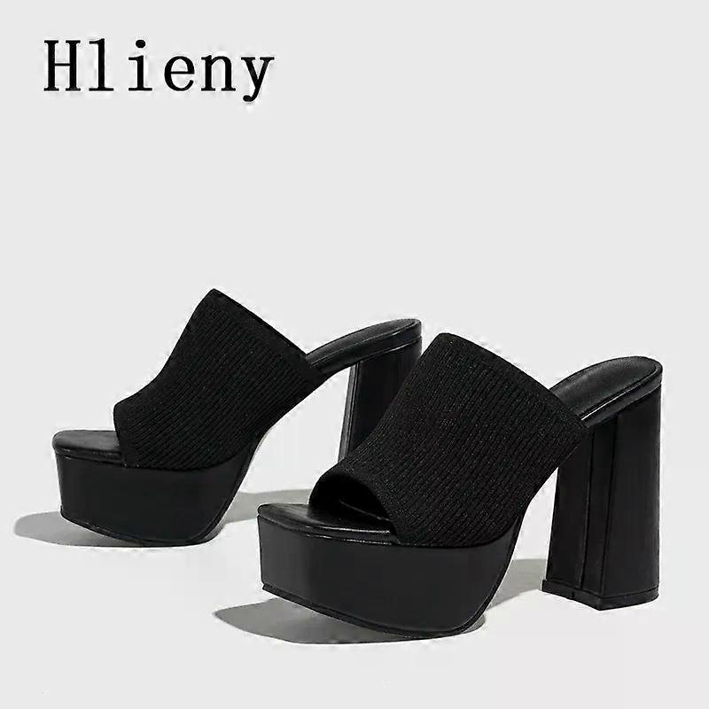 Hlieny Roma Style Knitted Platform Slippers Chunky High Heels Women Peep Toe Fashion Pumps Ladies Shoes Sandals Size 35-42