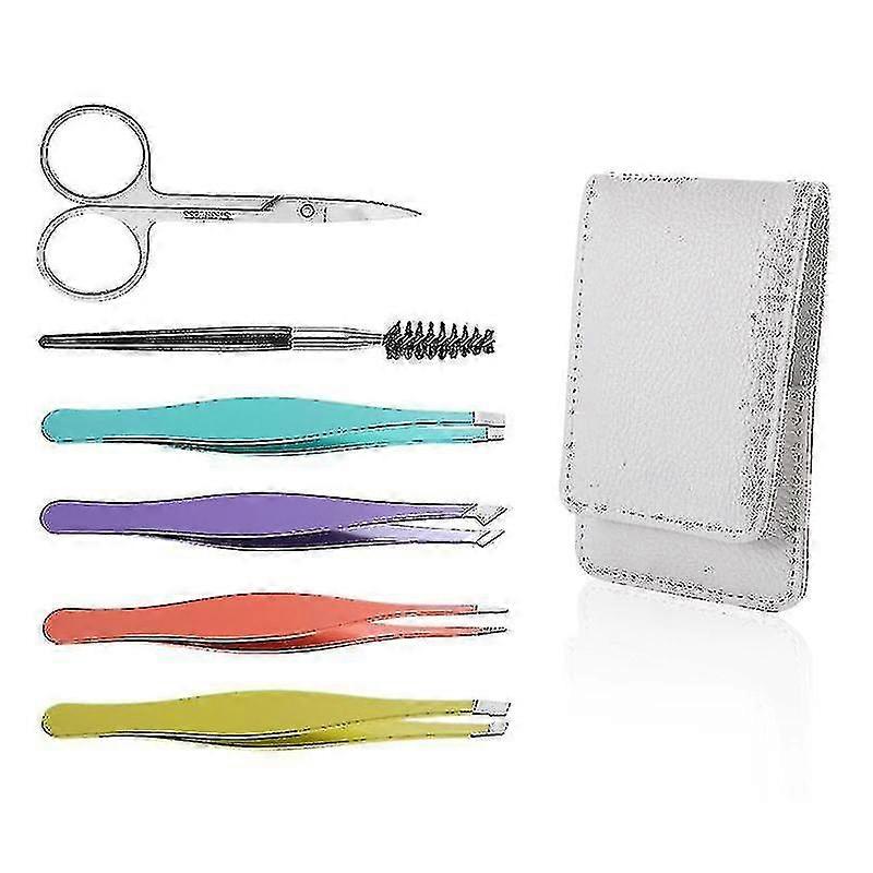 Eyebrow Tweezers Women 6Pcs Full Size Professional Eyebrow Tweezers Kit Precision Tweezers Set For Eyebrow/Hair Removal With Bag|Eyelash TweezersDescription:VALUABLE TWEEZERS SETUnlike other mini size tweezers in the market, this professional eyebrow tweezers are all full-sized which are more precise and effective in use. Meanwhile, you can get 6 PCS useful eyebrow grooming tools in 1 setWIDE APPLICATION WITH 4 DIFFERENT EYEBROW TWEEZERS4 different professional women tweezers are included in this kit, range from Slant Tweezer, Pointed Tweezer, Pointed-Slant Tweezer, Flat Tweezer. They can not only be used for eyebrow shaping, odd stray hairs/chin hairs removing, ingrown hairs removing, but false lashes and double eyelid affixingSHARP TIP WITH PERFECT ALIGNMENT & TENSIONThe tips of these professional women tweezers are sharp and perfectly aligned to meet from edge to edge so they can gripped the thickest of chin hairs, finest of upper lip hairs, ingrown hairs consistently, pluck at the root without cutting the hair.Specifications:Name: women eyebrow tweezers setMaterial: Stainless steelSize: as shownColor: colorfulQuantity: 6 pieces/setPackage Included:1x eyebrow brush1x eyebrow scissors4x eyebrow tweezers1x pu bag