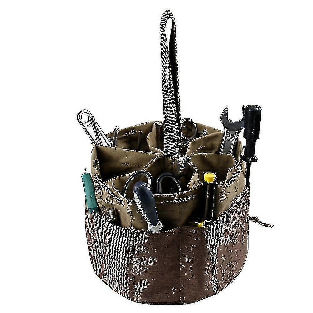 Hmwy-reusable Portable Bucket Garden Tool Bag Waterproof Canvas Gardening Tote Storage Pouch For Farm