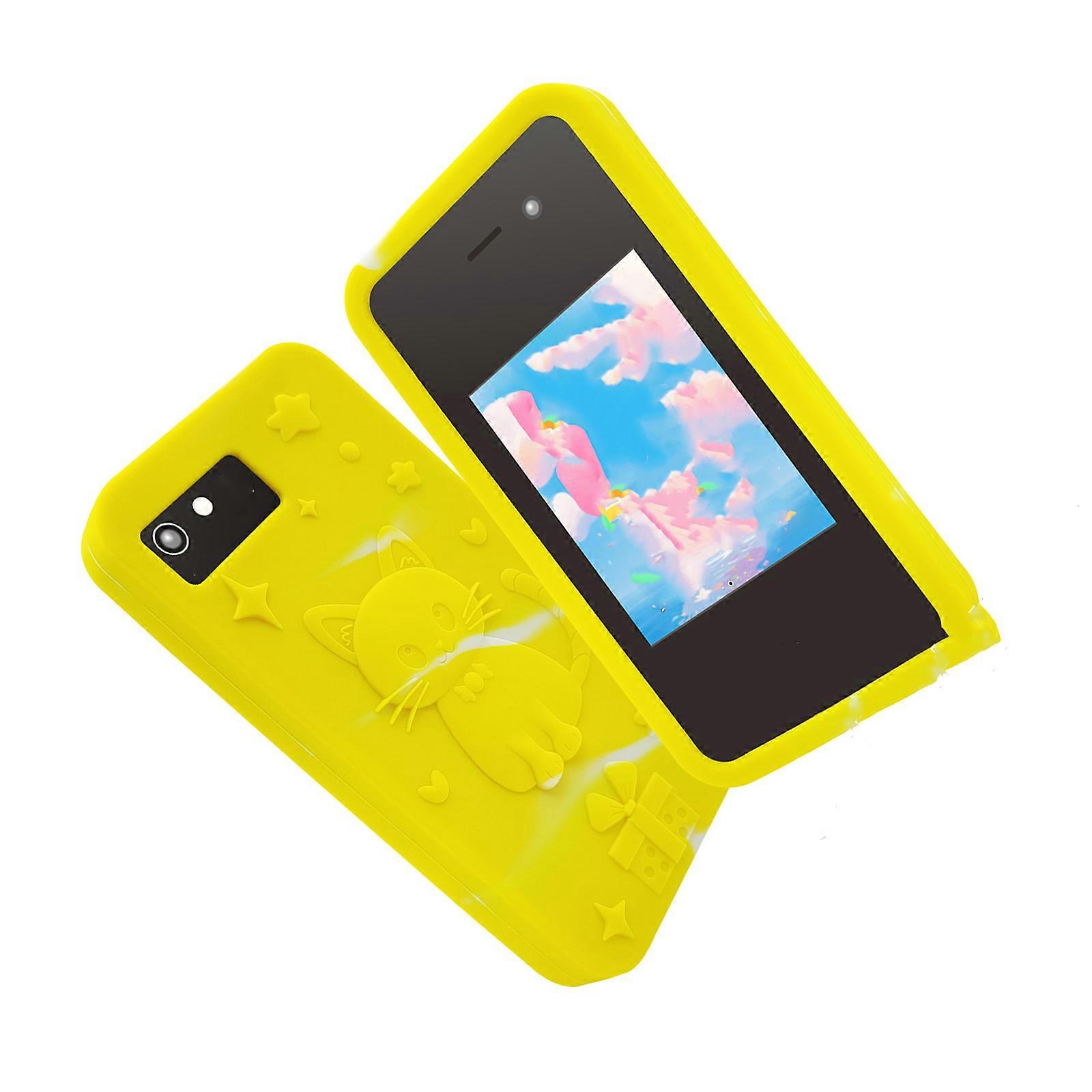 Features: Multifunctional Kids Smartphone with 18 educational apps combines photography (double 2MP auto focus cameras), music playback, 14 classical games, and practical tools like calculator/alarm clock, fostering creativity and cognitive development. Features a screen with 20 fun stickers for photo editing, 2.4GHz sharing capabilities, and a shockproof silicone case resembling compact size for safe indoor/outdoor adventures. Designed for children aged 3-10, this screen time controlled educational toy smartphone offer safe entertainment while developing empathy and problem solving skills through interactive stories and games. Perfect for family trips, playdates, or bedtime learning – kids can record pet photos, solve math puzzles, listening to stories, and share creative moments with parental supervision. Includes USB C charging cable, 3.5mm earphones, and bilingual instructions – ready for quick use as a birthday gift or holiday present that balances fun and skill building without screen addiction risks. Specifications: Component: ABS, Silicone Color: Pink or Yellow or Blue Size: approx.115x58x9mm/4.52x2.28x0.35inch Quantity: 1pc Package Includes: 1x Children's Learning Smartphone 1x Silicone Mobile Phone Protective Case 1x 3.5mm Headphones 1x USB-Type-C Charging Cable 1x Chinese and English Manual note: Please allow 1-2cm errors due to manual measurement. Due to the differences between different monitors, the picture may not reflect the actual color of the item.
