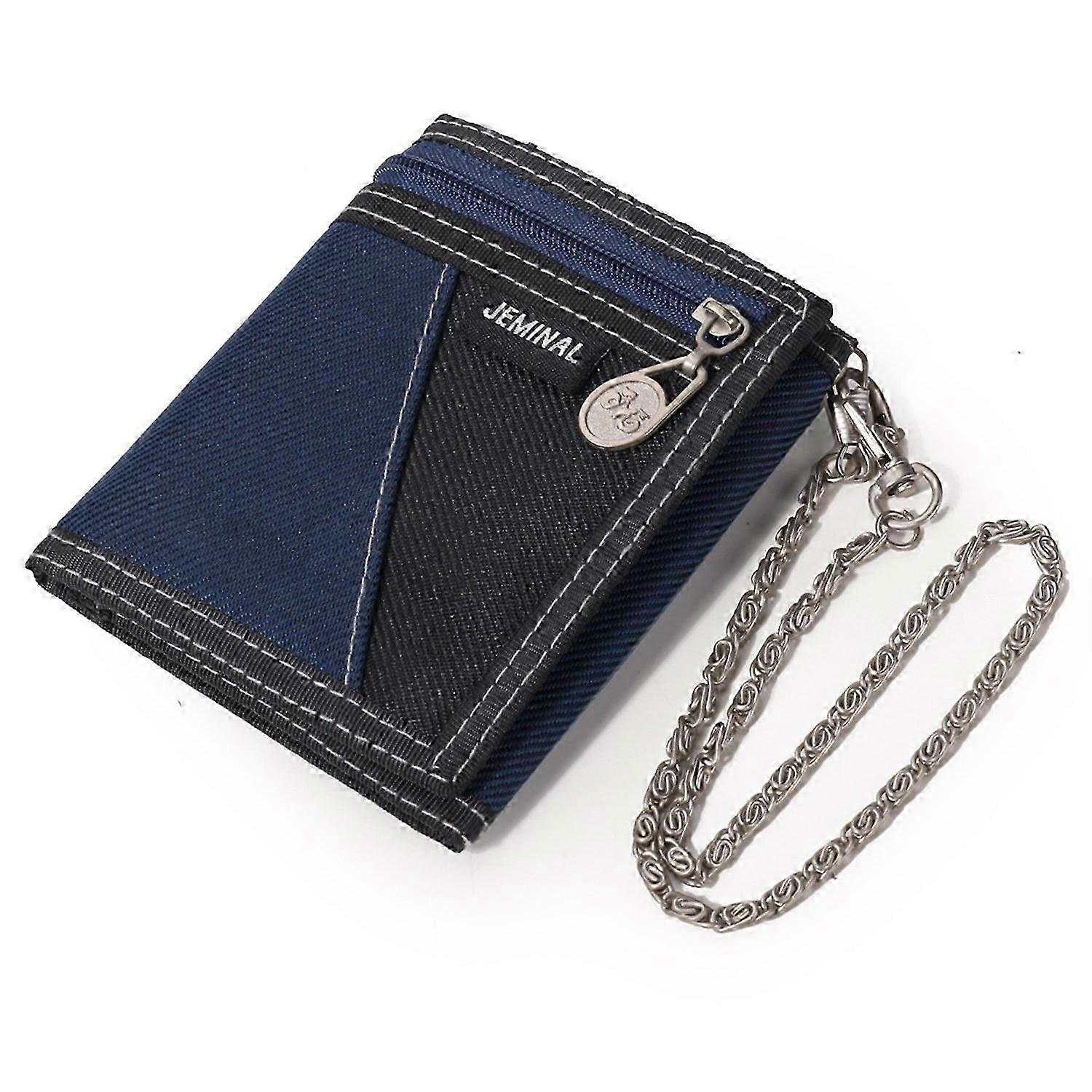 Jeminal 1005 Vintage Men Tri-fold Wallet Casual Canvas Purse Cards Money Holder With Strap