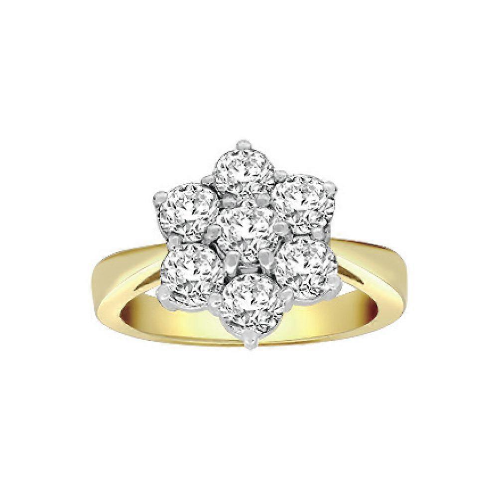 Jewelco London Solid 18ct 2 Colour Gold Claw Set Round G SI1 2ct Diamond 7 Stone Flower Cluster Ring 14mm