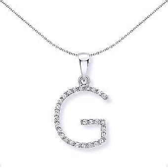 Jewelco London 9ct White Gold Diamond Initial Charm Pendant Letter G 10mm x 18mm