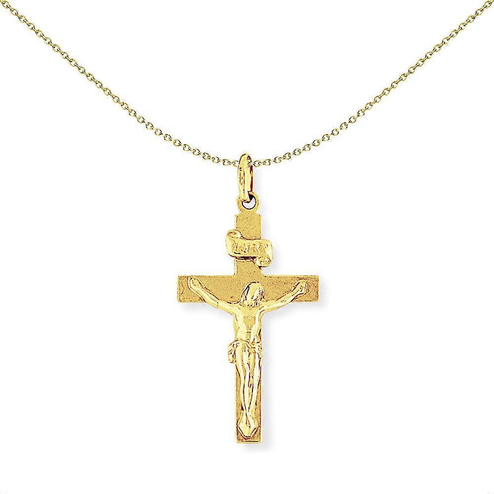 Jewelco London 9ct Yellow Gold Crucifix Jesus INRI Cross Charm Pendant - 19x37mm